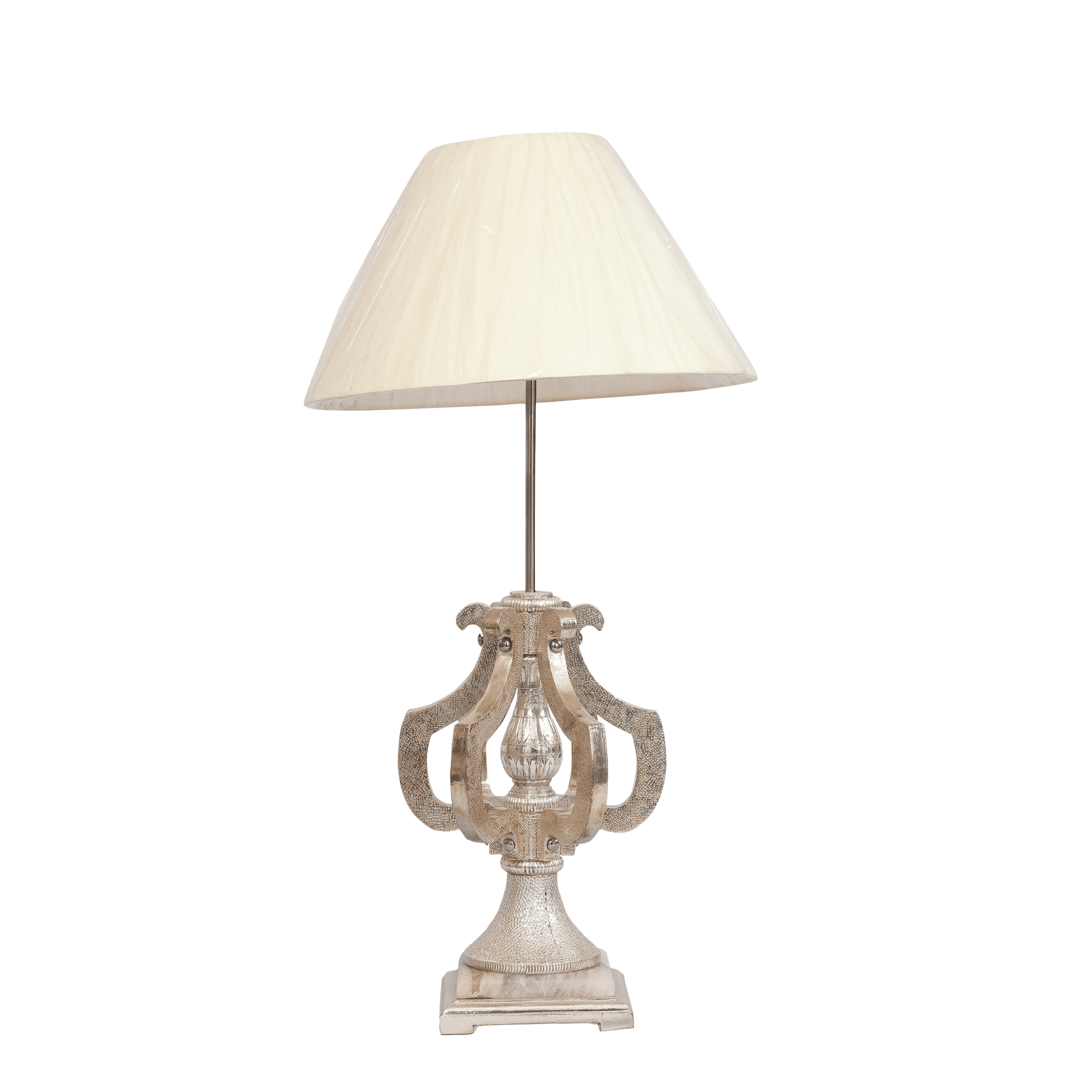Illuminate your living space with the exquisite fusion of tradition and luxury in our Cup Shaped Lamp. Crafted from premium teak wood and cladded in silver. Imagine this statement piece casting a warm glow on your evenings, perfect for those who appreciate both artistry and functionality in their decor. it’s the ideal addition to elevate any mantle or side table. Bring home sophistication, make this unique lamp yours today!