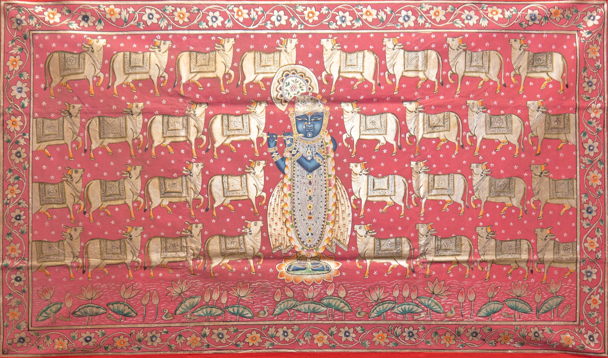 The festival of vermillion showcases the vibrancy of the festival through a vermillion background, that gives a sense of intensity to a wall or space that it adorns.