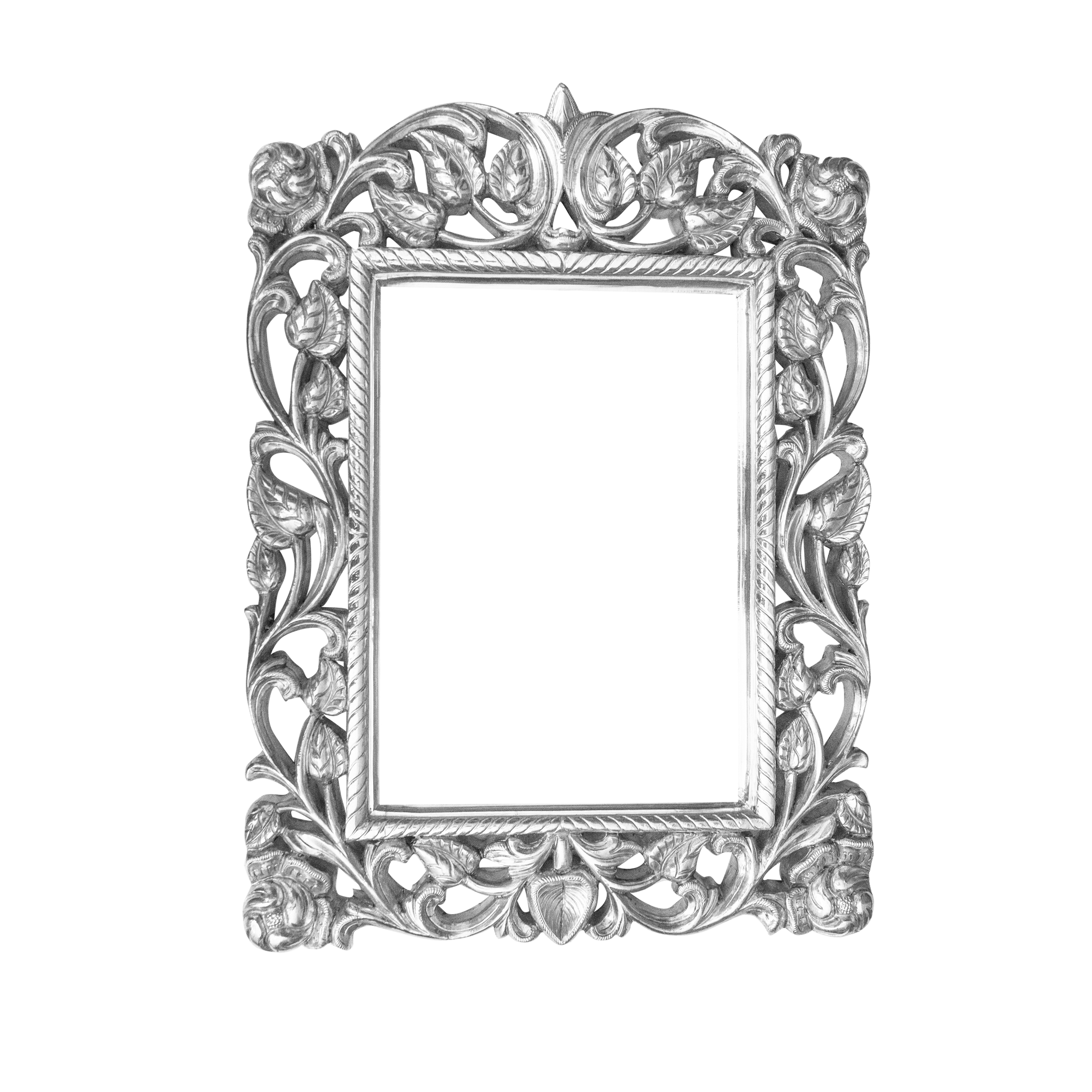 This Garden Frame is made from high-quality teak wood, sheathed in silver sheets for additional luxury and elegance. It's a durable frame that will last for years, and the silver sheathing adds a unique touch to any outdoor space.
