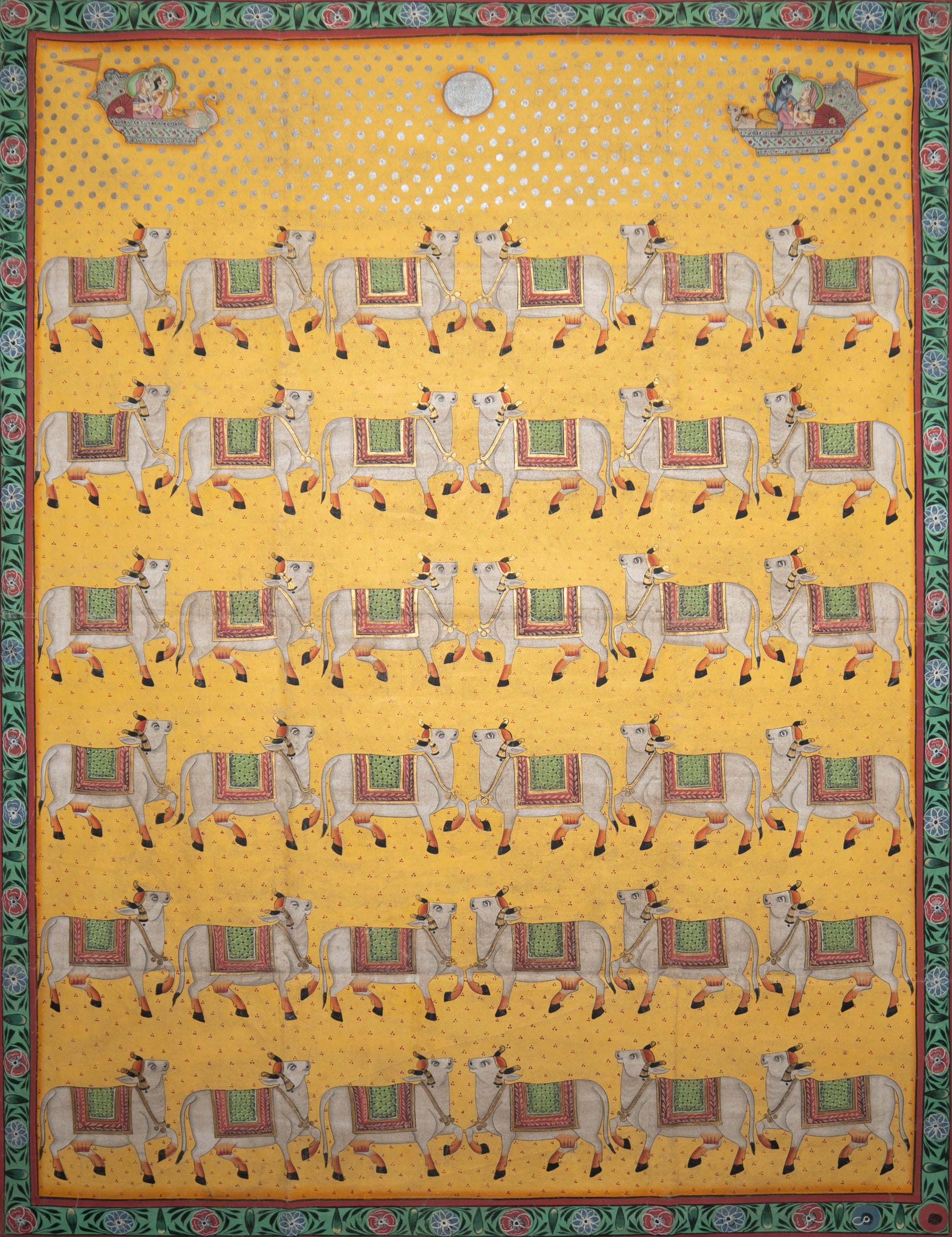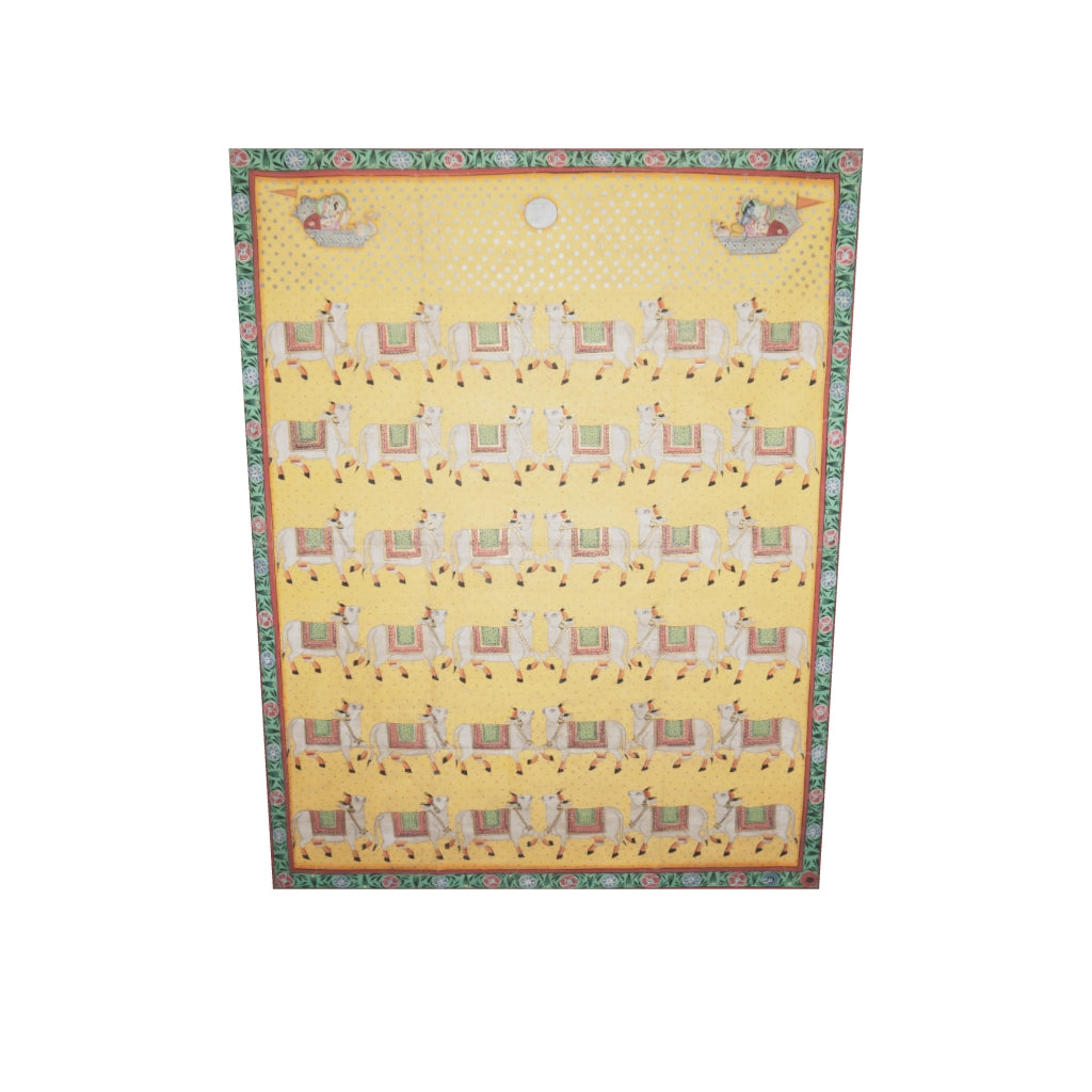 Pichwai paintings are beautiful examples of India’s traditional art and craftsmanship. The word ‘Pichwai’ comes from pich (back) and wai (textile wall hanging), as these paintings were once hung behind the idol of Srinathji in temples. Over time, handcrafted Pichwai art has evolved to include not just religious themes but also peaceful scenes of nature, flowers, and animals.