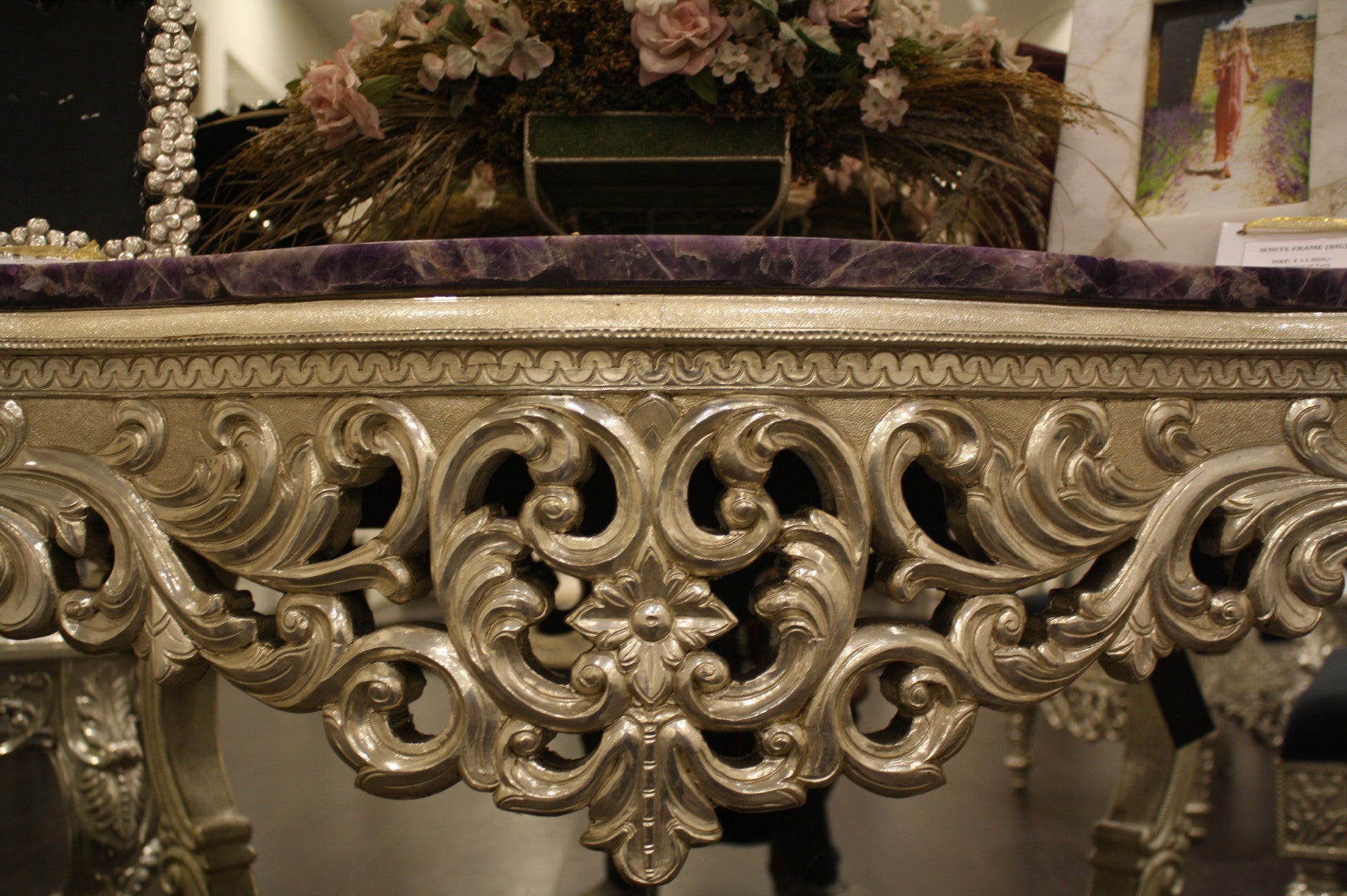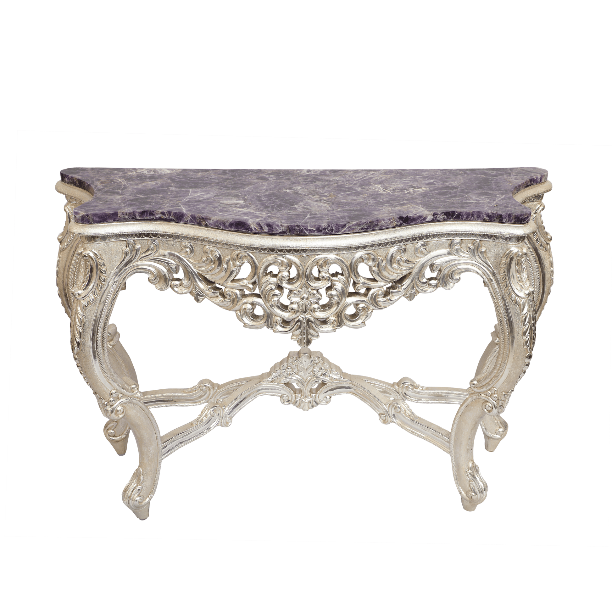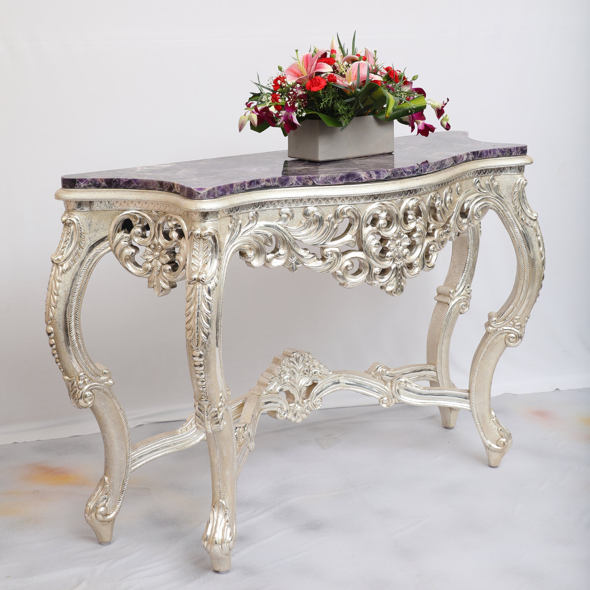 Elevate your living space with the luxurious Merlot Console, graced by a captivating Amethyst topper and exquisite silver cladded accents. This statement piece exudes sophistication. The deep Merlot finish evokes richness, the natural beauty of the amethyst not only dazzles visually but also infuses your home with an aura of elegance. Transform ordinary moments into extraordinary experiences—make this stunning console yours today.