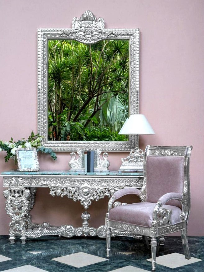 Pompeii Console, a testament to timeless elegance and refined luxury. Handcrafted with utmost attention to detail, this extraordinary piece is exquisitely silver cladded, Inspired by the grandeur of ancient Pompeii .Redefine sophistication in your home; elevate your decor with a console celebrated for both heritage and style. Bring home the Pompeii Console today.