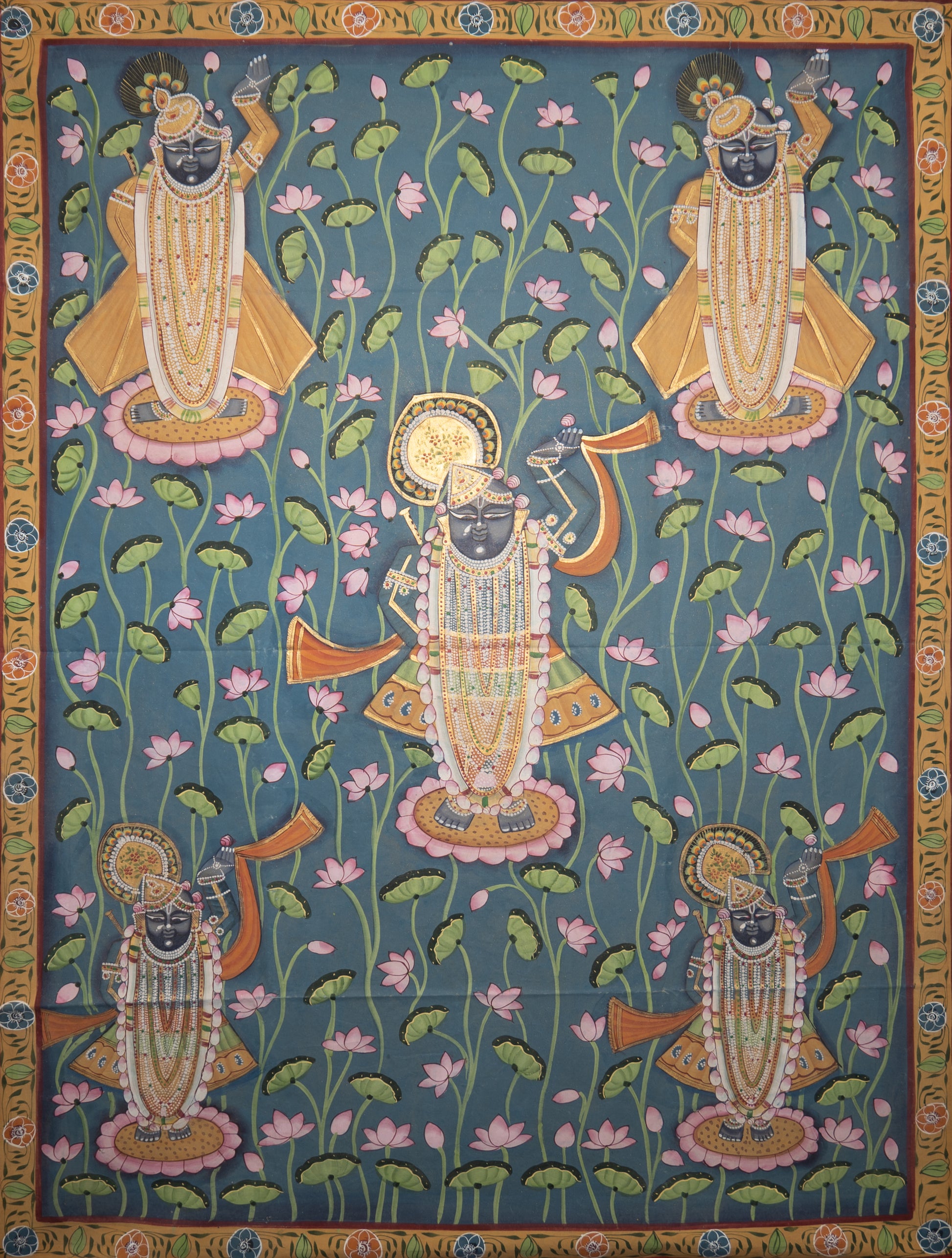 The Sacred Lotus by Khenshu is an elegant handcrafted Pichwai painting that beautifully captures the divine essence of lotus gardens. Symbolizing purity and spirituality, this Pichwai painting radiates a serene aura, bringing a sense of sacredness and calm to any space it adorns. Each artwork is handcrafted with intricate detailing and traditional techniques, reflecting Khenshu’s dedication to preserving India’s artistic heritage. Perfect for art lovers and collectors, this handcrafted Pichwai painting adds timeless grace and spiritual charm to modern interiors.
