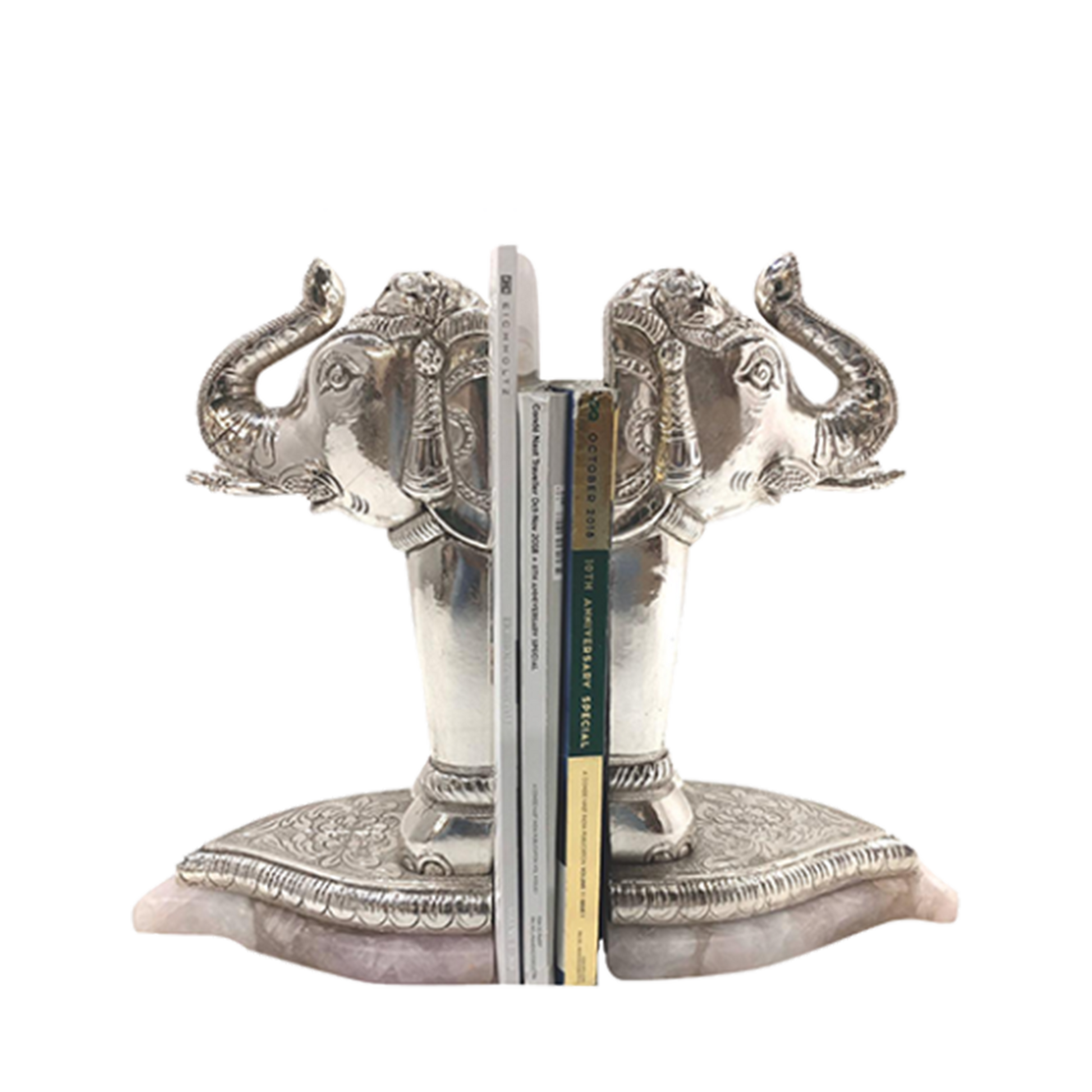 Introducing the Tusker Bookends, expertly handcrafted and refined with silver cladded accents, these elegant bookends are more than functional, they create an atmosphere of timeless luxury. Imagine your best-loved books nestled between gleaming tusked elephants, their artistry admired by guests and family alike. Join discerning collectors who trust in quality and design; elevate your interior decor today with these exquisite Tusker Bookends.